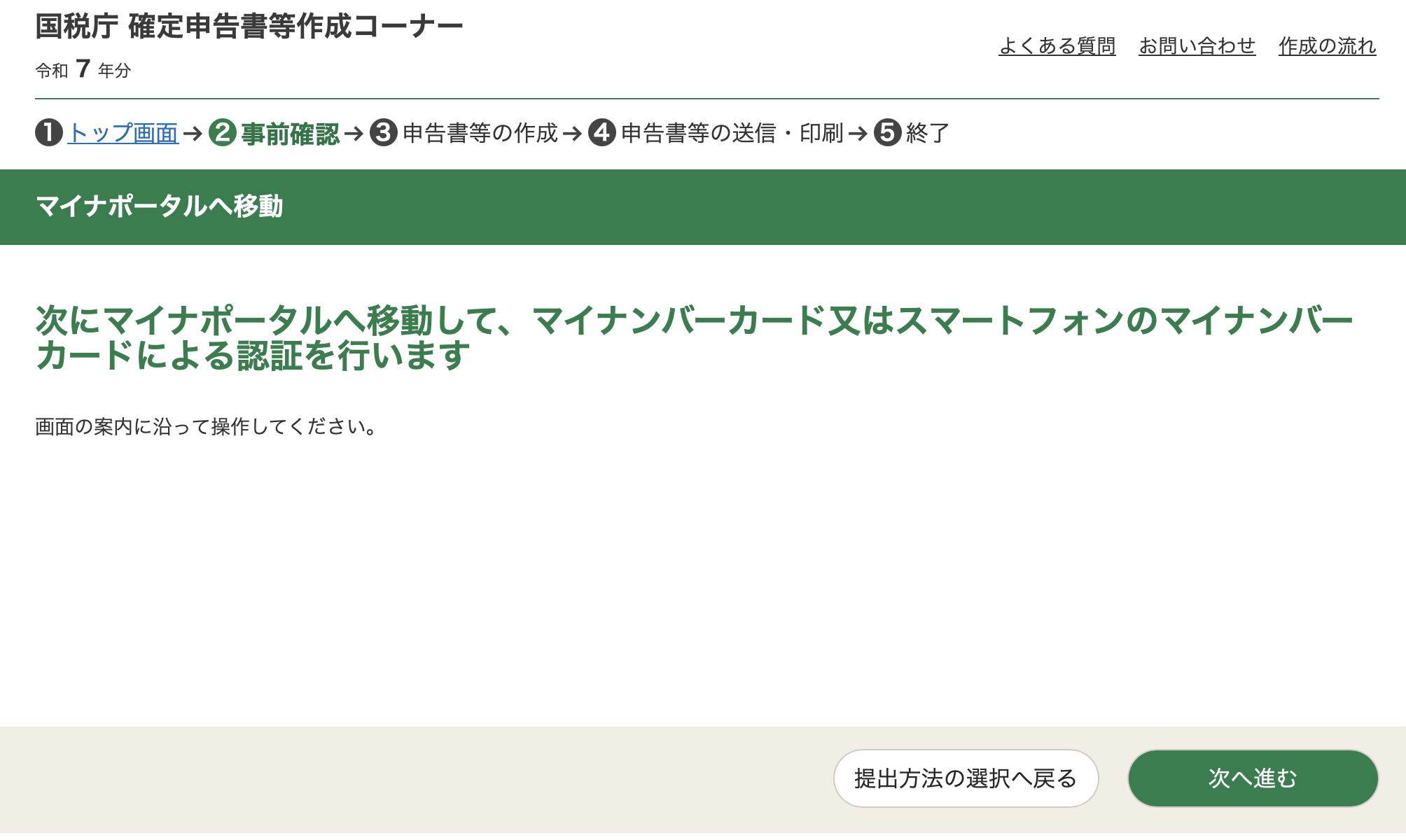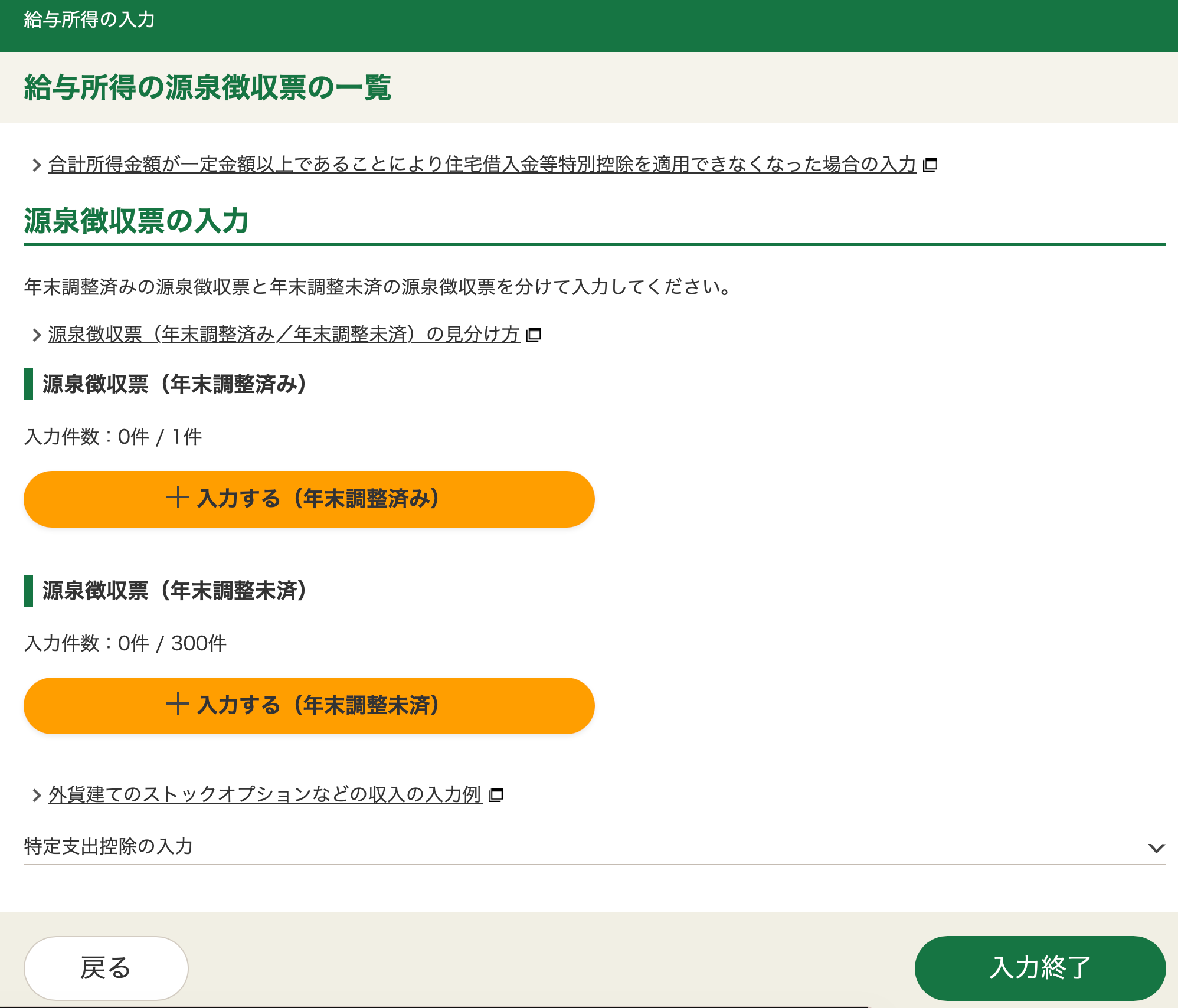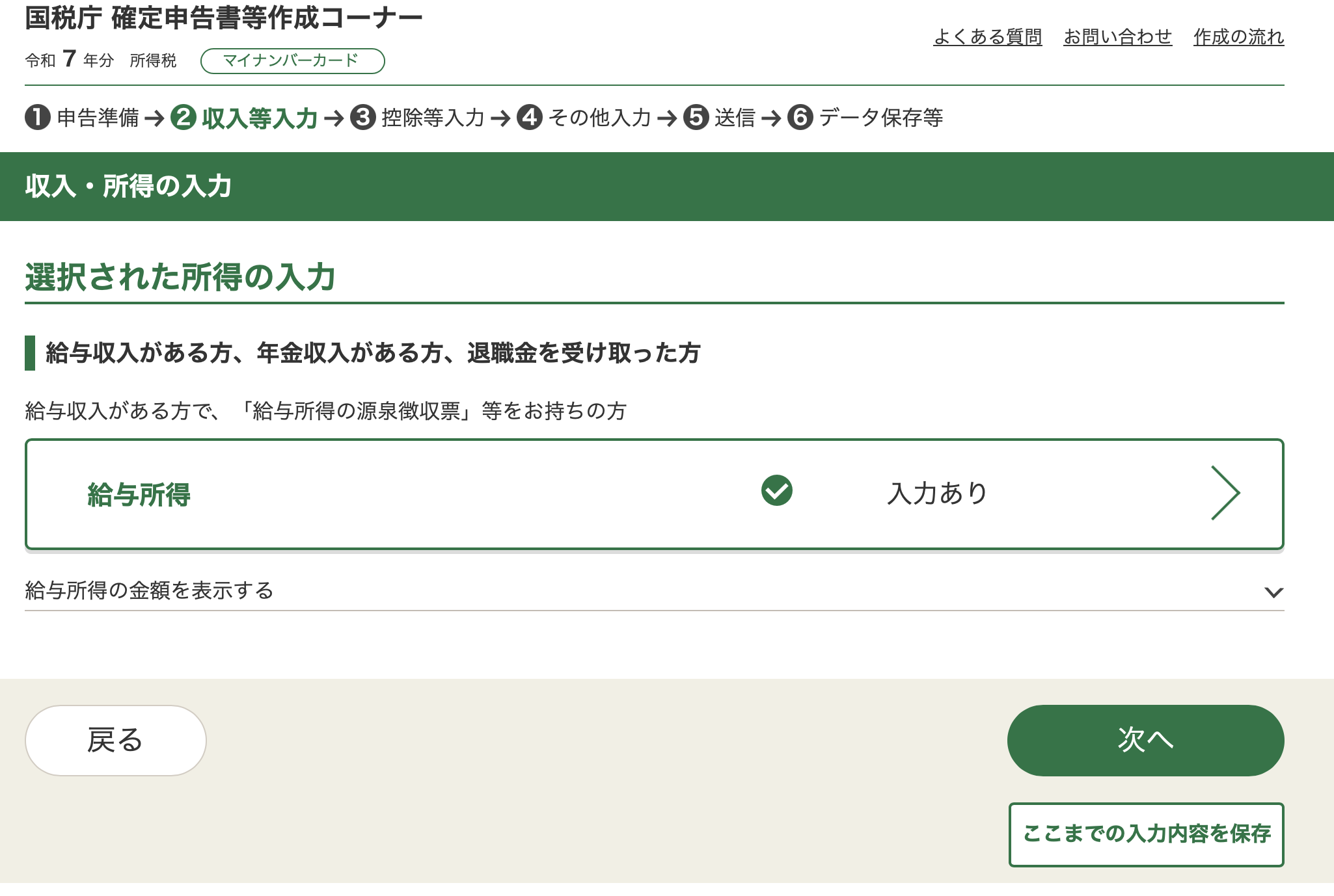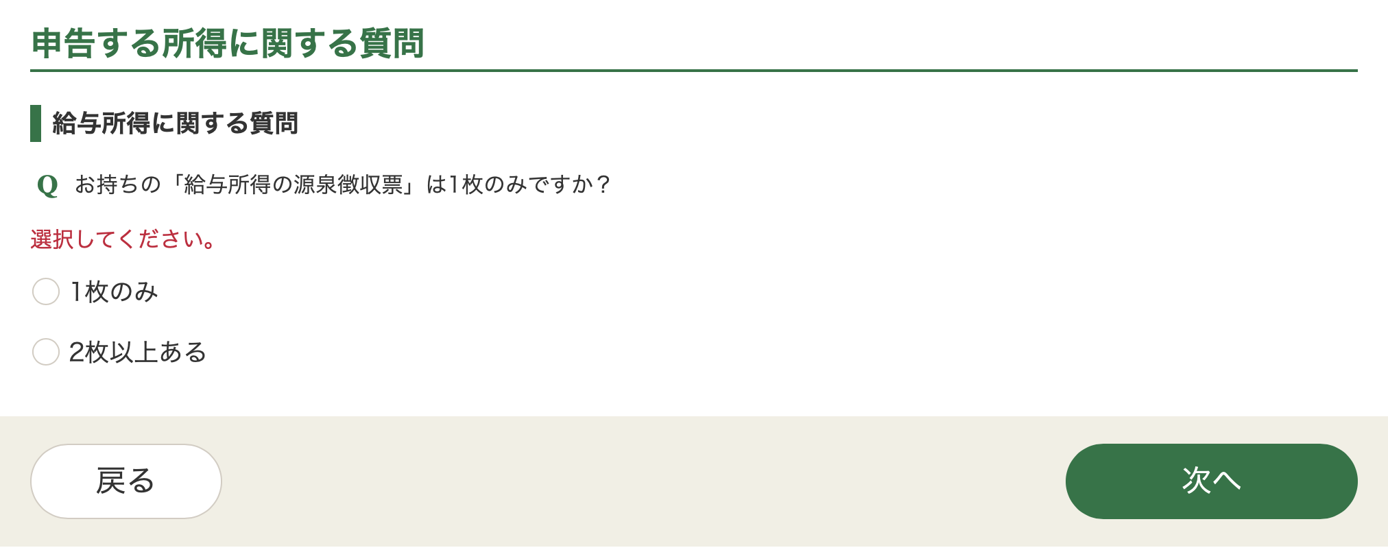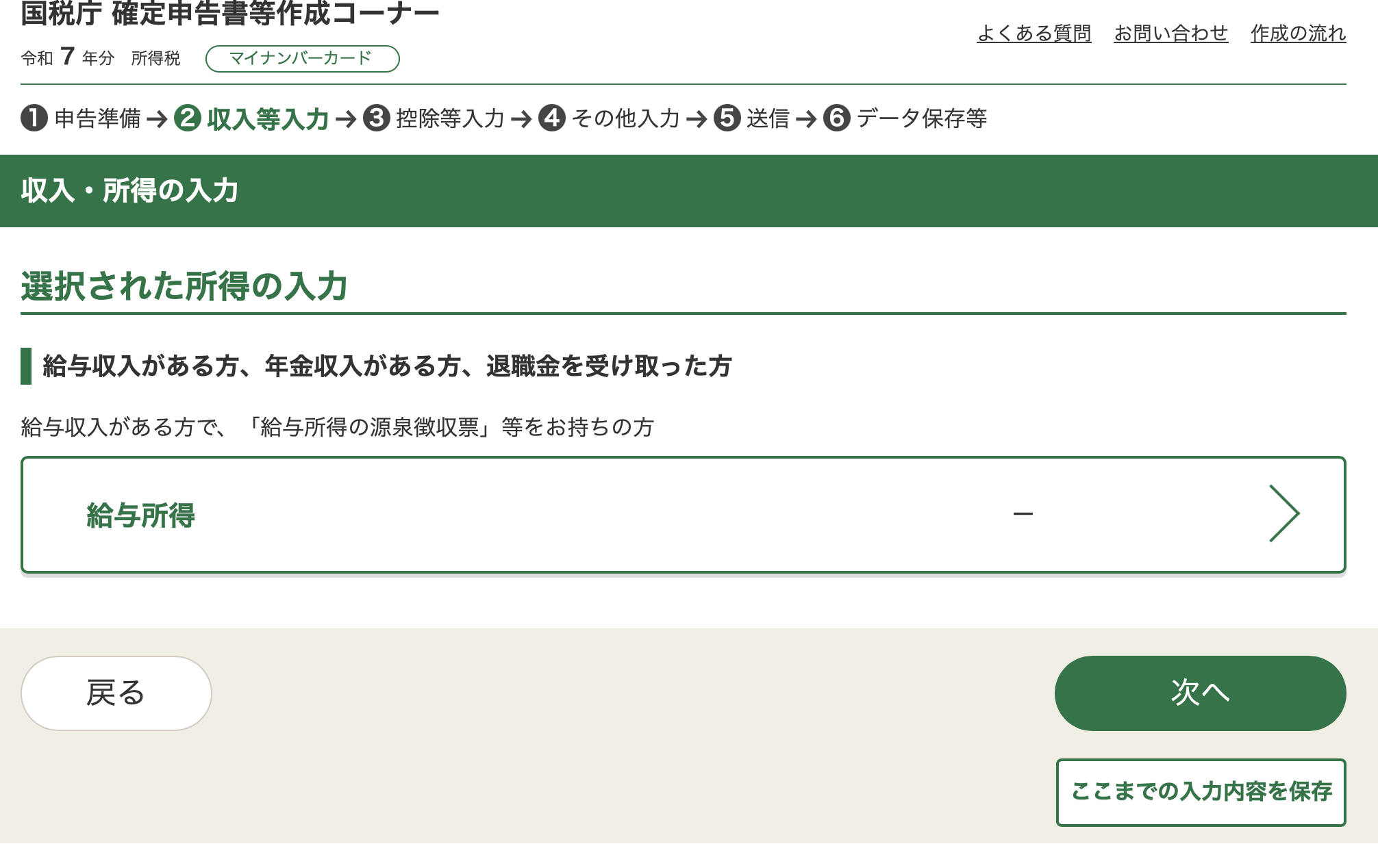 Select the green box in the middle, 給与所得. That leads to another page, with 2 orange buttons.