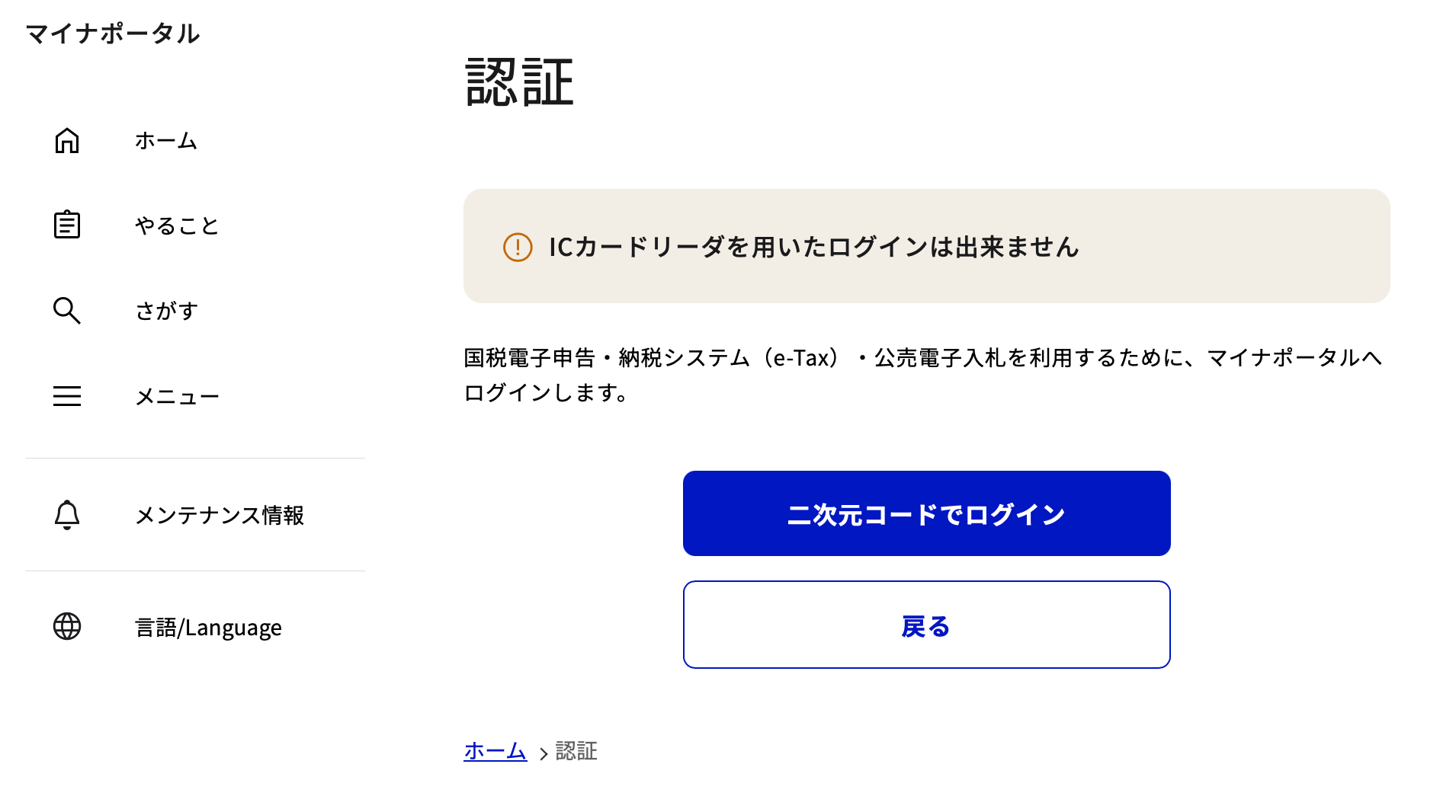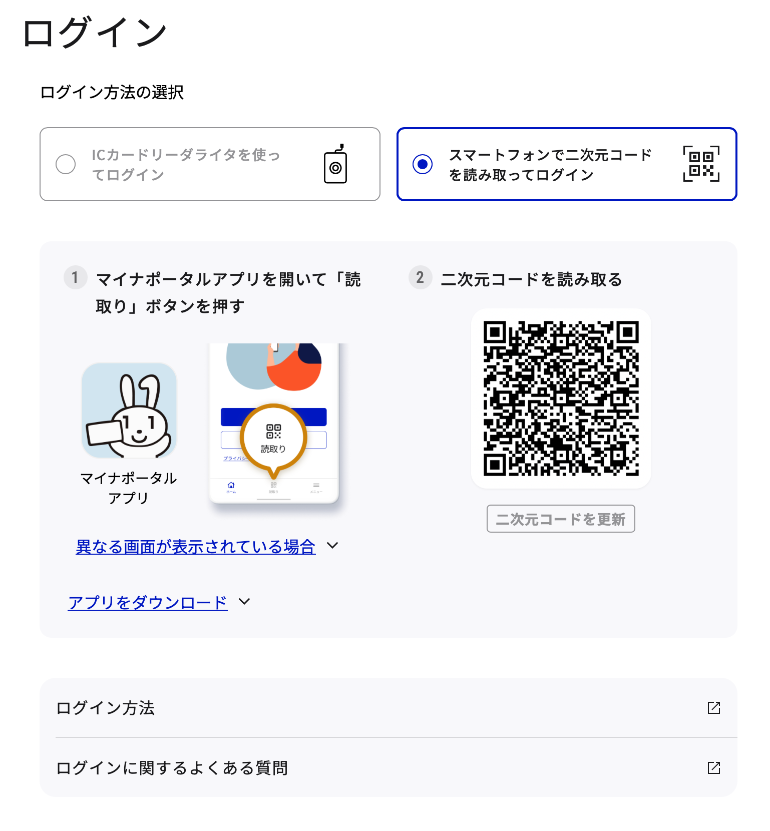 The 2 green buttons at the bottom ask you to choose which device you have, left for smartphone and right for IC chip reader. Most people would probably have a smartphone.