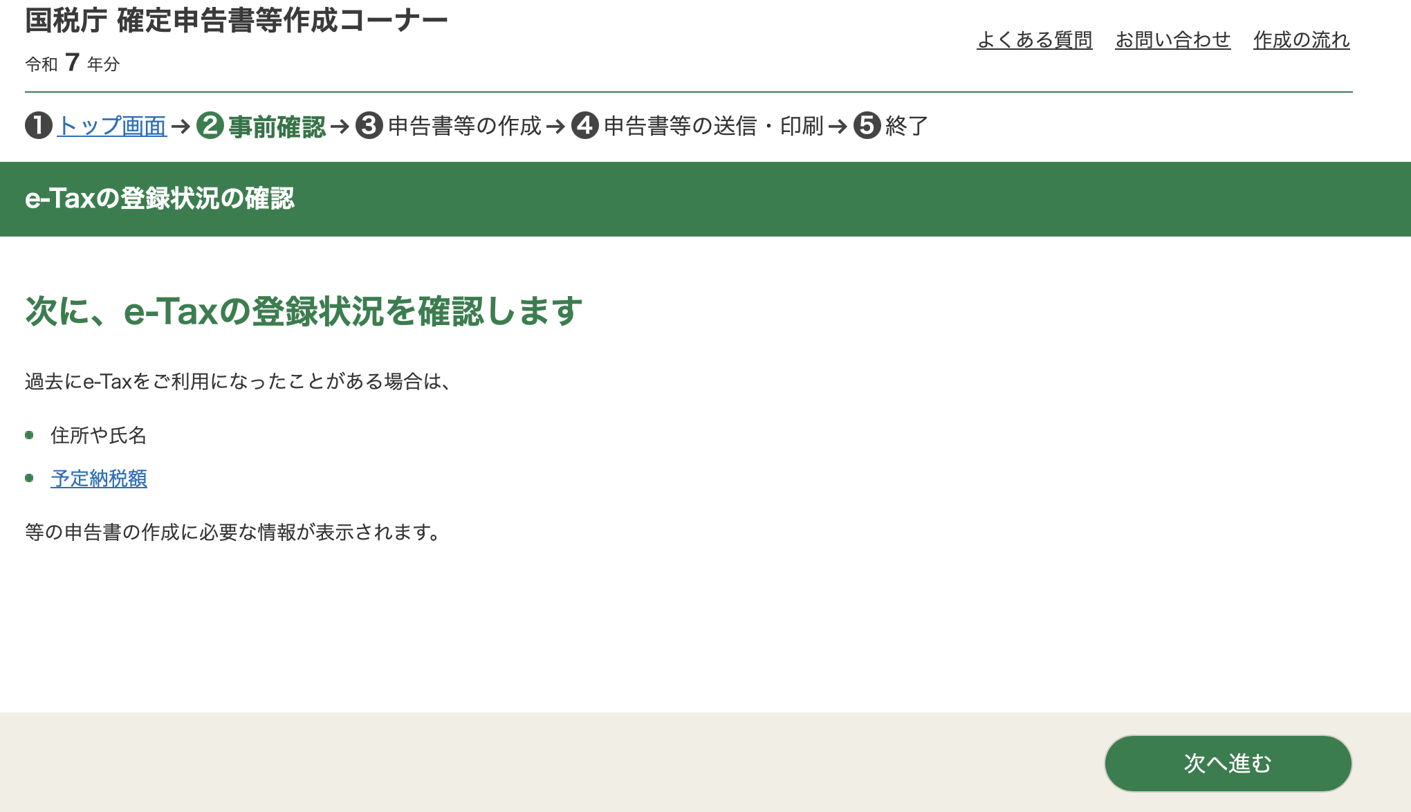 This lands you on a page to make selections for you tax filing.