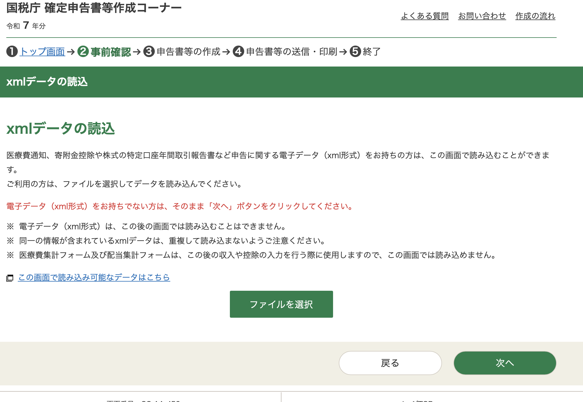 This leads to a page i simply cannot figure out (if you know how to use this, please tell me) - apparently you can upload data in an xml format to fill out the form. Perhaps its for companies or tax professionals who file on user's behalf. Either way, i don't have an xml (and if you're reading this, i suspect you don't either), so click the green button at the bottom right to proeed.