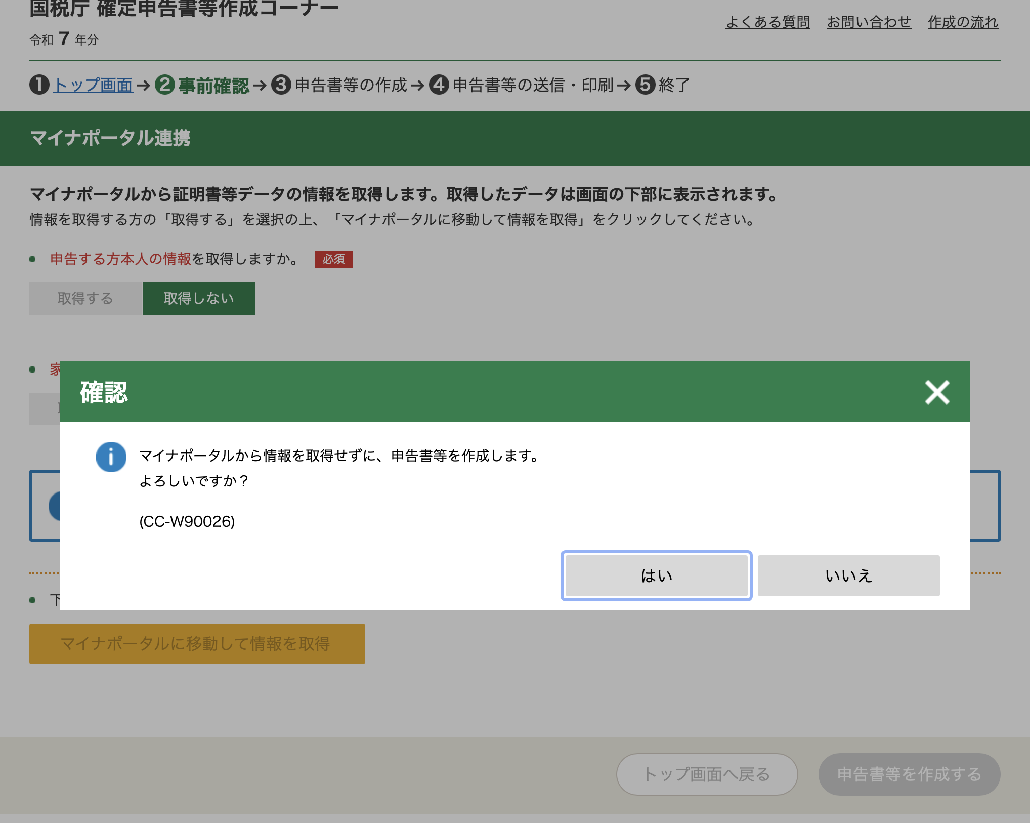 A pop up will appear, asking you to confirm if you want to proceed without retrieving any information. Select はい