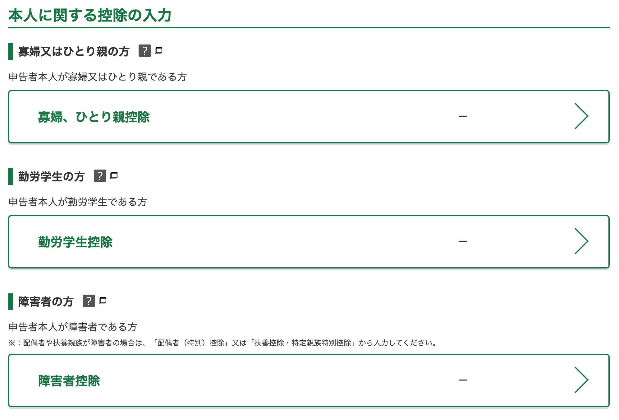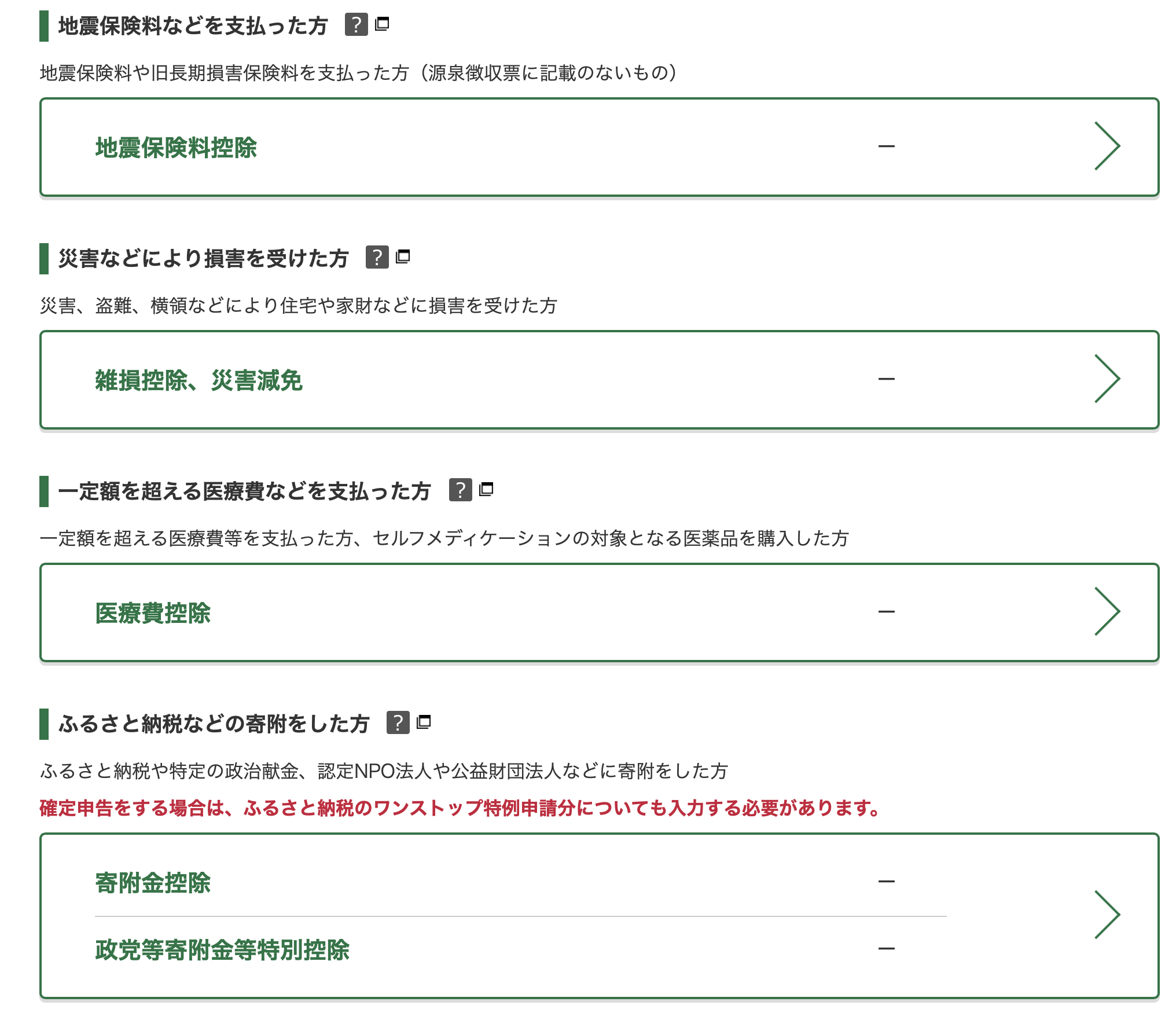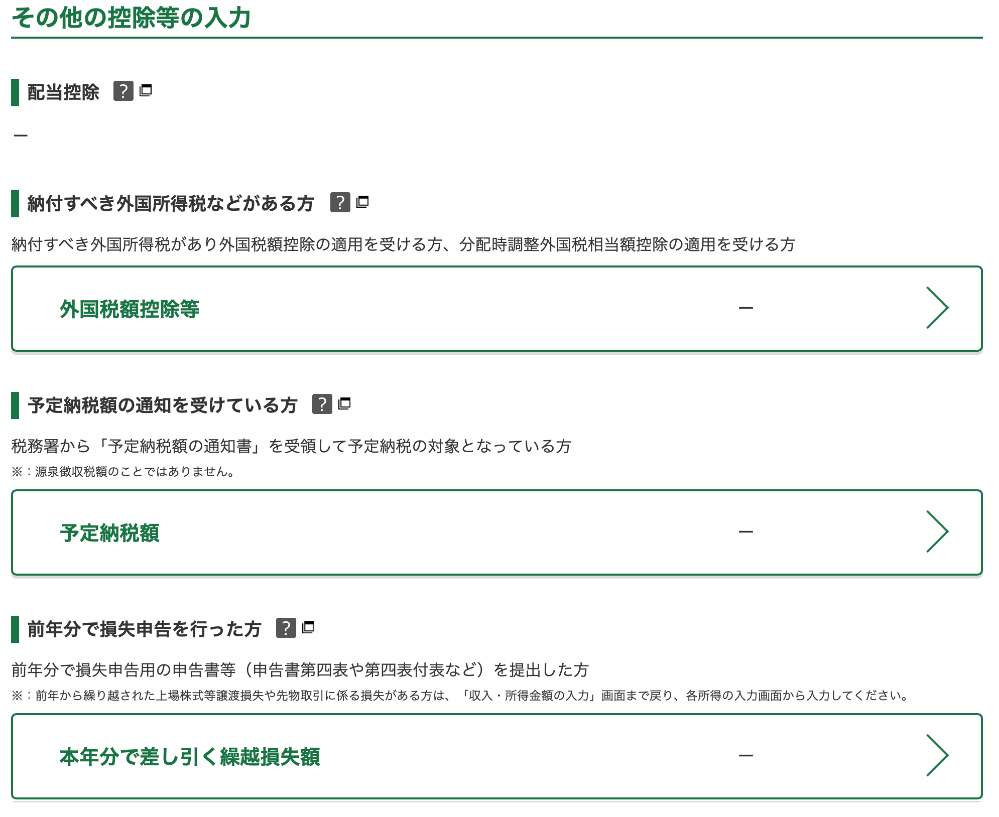 Checking any of these prompts you to input details regarding these incomes or deductions.