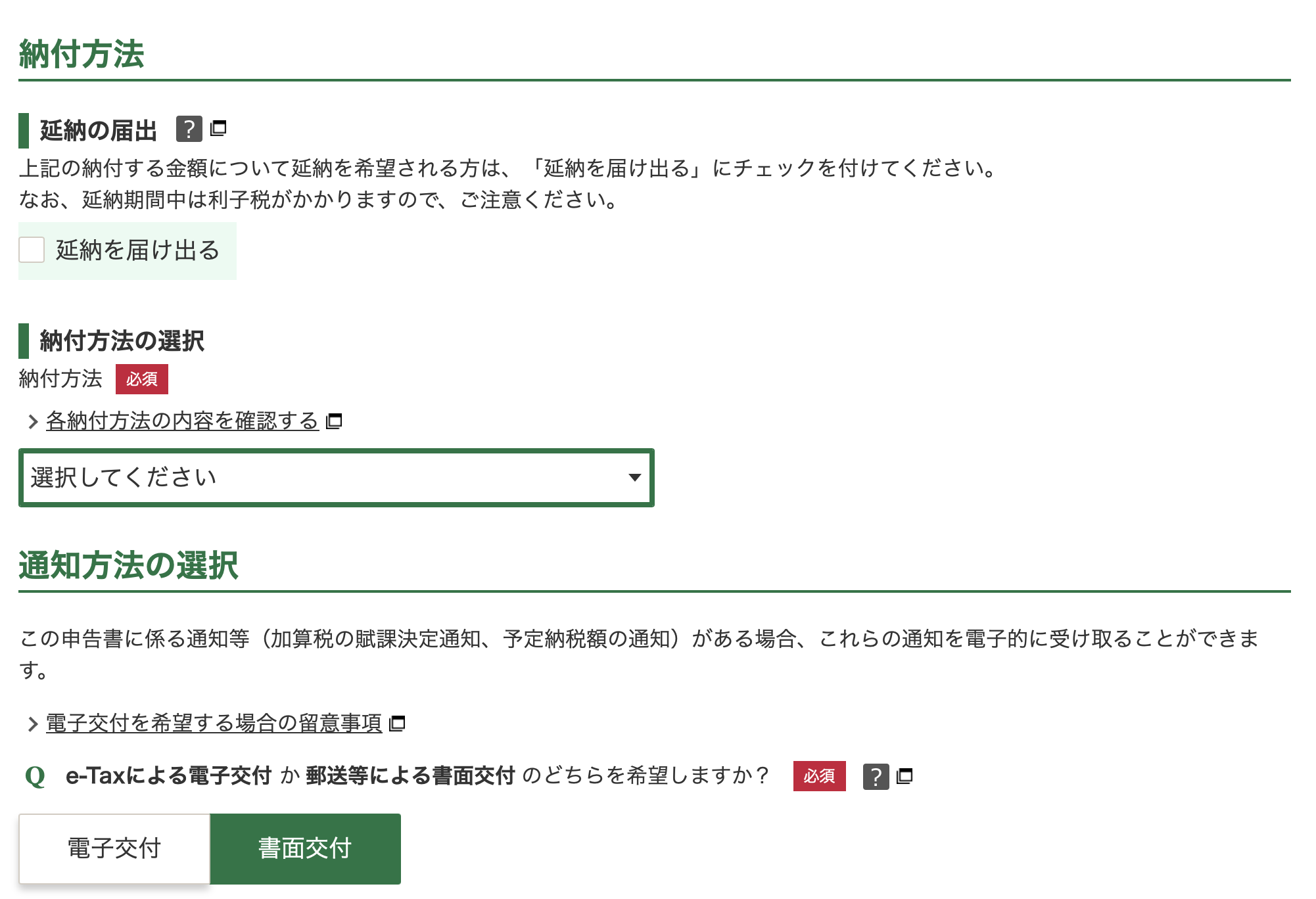 - The dropdown allows you to select your preferred tax payment method.